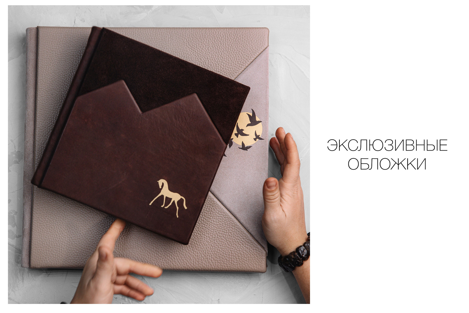 Большинству клиентам мы подбираем материалы и цвета обложки — уже после того как фото распечатаны